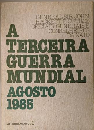A Terceira guerra mundial agosto 1985 – John Hackett: ” O livro foi escrito pelo General Sir John Hackett e outros oficiais-generais e conselheiros da OTAN como uma narração pós-guerra, descrevendo os fatos de um fictício ataque Soviético na Europa no dia 20 de Agosto de 1985 e conseguinte represália que levaram o mundo à Terceira Grande Guerra Mundial. Temos a narração detalhada das operações em terra, mar e ar; análise das causas e efeitos do conflito; armas usadas; como a guerra podia ter sido evitada, etc. Foi escrito numa tentativa de alertar o Ocidente, especialmente a OTAN para os perigos da redução dos investimentos na área militar, uma ideia que estava se popularizando na época”.