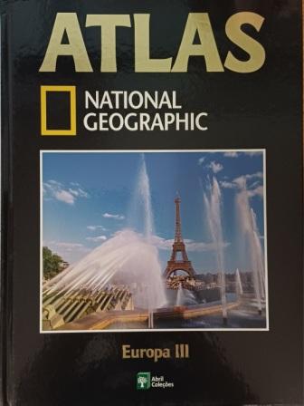 Atlas National Geographic – Europa III: Contém mapas da França, Mônaco, Andorra, Portugal, Espanha, Suíça, Liechtenstein, Eslovênia, Itália, San Marino, Vaticano, Malta, Croácia, Sérvia, Bósnia-Herzegóvina, Montenegro, Bulgária, Romênia, Albânia, Macedônia, Grécia e Chipre; Mapas de ruas das cidades de Paris, Marselha, Madri, Barcelona, Lisboa, Liubliana, Berna, Roma, Milão, Sófia, Zagreb, Bucareste, Belgrado e Atenas; Bandeiras, imagens de satélite e fotos das paisagens naturais e urbanas; Dados estatísticos com base nas principais fontes internacionais. Livro usado, em muito bom estado de conservação, capa dura, rica e amplamente ilustrado.