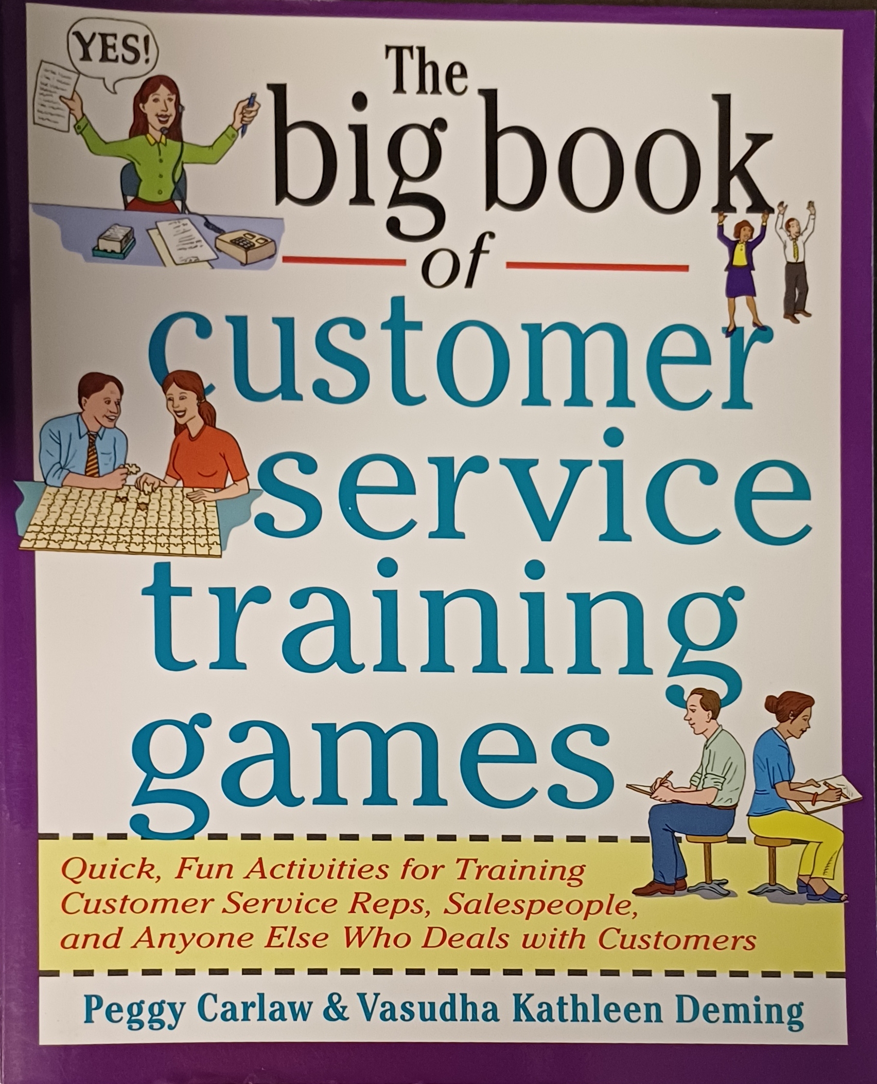 Big book of customer service training games, the – Peggy Carlaw; Vasudha Kathleen Deming: “Help your employees to excel in dealing with the public with this stimulating, fun-filled collection of customer service training games. Designed not only to teach important skills but also to spark enthusiasm and a high level of involvement in the participants, these games utilize entertaining and instructive techniques such as role-playing, charades, brainstorming, and debate. As a result of these exercises, employees will learn how to create a rapport with the customer, how to focus on the unique needs of individual customers, how to maintain a positive attitude, and more”.