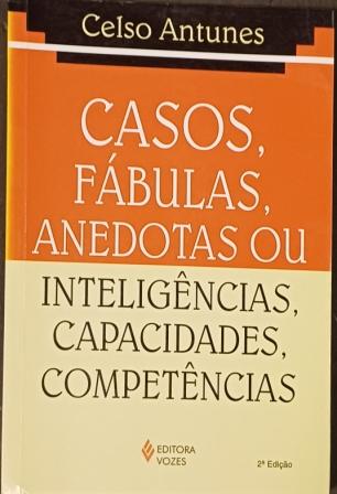 Casos fábulas anedotas ou inteligências capacidades competências – Celso Antunes:” Ao invés de buscar as formas consagradas de refletir o cotidiano da sala de aula e os desafios na vida do professor pelas maneiras convencionais, o autor optou em fazê-lo por meio de fábulas, casos, anedotas e lendas, procurando buscar nos caminhos da poesia e da ironia, da graça e da emoção as incoerências entre a sala de aula que se é obrigado a ter e a que se quer construir”.