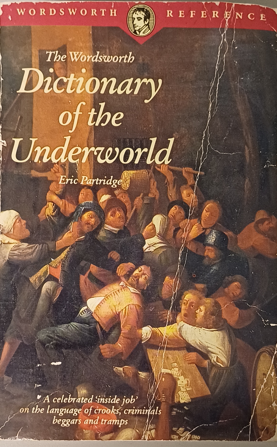 Dictionary of the underworld – Eric Partridge: “The eminent philologist Eric Partridge here turns his eye and his wit on that mysterious area defined as ‘cant’, Partridge describes it as “the vocabularies of crooks, criminals, racketeers, beggars, tramps, convicts, the commercial underworld, the drug traffic, the white slave traffic, and spiv´s, gahered from many countries and from many obscure and esoteric sources. This exotic compilation may be used both for inside information and to browse through for its mind-boggling and often hilarious revelations from a world few explore at first hand”.