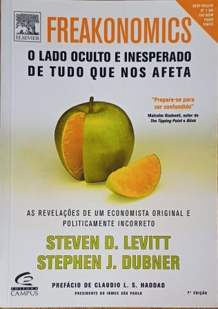 Freakonomics – o lado oculto e inesperado de tudo que nos afeta – Steven Levitt – Stephen Dubner: “Neste livro os autores demonstram que a Economia é, em essência, o estudo dos incentivos – como as pessoas conseguem o que desejam ou lhes é necessário, principalmente quando outros desejam a mesma coisa ou dela necessitam. Em Freaknomics, ambos se dispõem a explorar o lado oculto de…ora, de tudo. A estrutura de uma gangue de crack; a verdade sobre os corretores de imóveis; os mitos do financiamento de campanhas eleitorais, entre outros”.