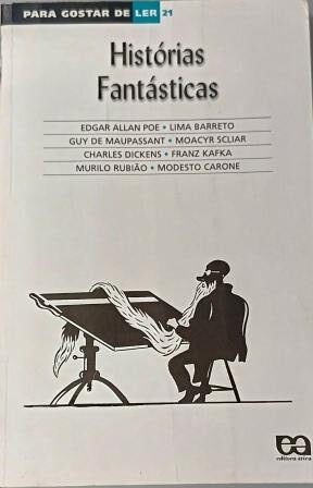 Histórias fantásticas – volume 21. coleção para gostar de ler – Edgar Allan Poe – Lima Barreto – Guy de Maupassant – Moacyr Scliar – Charles Dickens – Franz Kafka -Murilo Rubião – Modesto Carone: “Fatos estranhos, aparentemente incompreensíveis, transtornando a vida de pessoas comuns. Realidade ou imaginação? Em meio a tantos mistérios e tantas surpresas, há espaço para que cada leitor encontre sua própria explicação. Esse é o fascinante desafio que nos propõem essas histórias fantásticas”.
