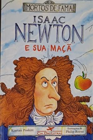 Isaac newton e sua maçã – Kjartan Poskitt – Mortos de Fama: “Isaac Newton viveu há trezentos anos e vai ser famoso de morrer até o fim dos tempos. Mas por quê? Todos sabem que um dia ele se sentou à sombra de uma macieira e levou uma maçãzada na cabeça, o que o levou a descobrir a lei da gravidade. Só que a história és muito mais interessante. Poucos sabem, por exemplo, que Isaac foi o último da classe.Logo nas primeiras páginas, o autor relaciona algumas coisas que contará sobre o grande sábio: “Por que ele enfiava coisas embaixo do globo ocular e quase ficou cego; como ele conseguiu decompor a luz; como ele inventou todo um novo sistema matemático entre outras.