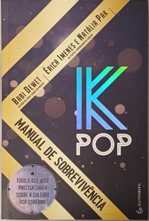 K-pop – manual de sobrevivência – Babi Dewet; érica Imenes; Natália Pak: “Você realmente sabe tudo sobre K-Pop? Se a sua resposta é não, venha conosco nessa incrível viagem pelo mundo pop coreano Escrito de uma maneira simples e divertida, este manual leva você a passear pela história da Coreia do Sul e por sua cultura, indústria de entretenimento, música e paixão. E nós te encorajamos a prestar atenção nos detalhes. O K-Pop é feito deles. Cada cor, cada conceito, cada ritmo e expressão significa um mundo de possibilidades, e garantimos que você não vai querer perder nada. O K-Pop mudou a nossa vida para melhor. Quem sabe não é exatamente disso que você precisa?”