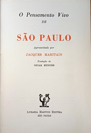 O Pensamento Vivo de São Paulo – Vol. 5 – Jacques Maritain- 1961: “O Pensamento Vivo de São Paulo – Vol. 5 – Jacques Maritain – 1951: “Este volume da aclamada “Biblioteca do Pensamento Vivo” oferece uma antologia essencial dos escritos de São Paulo Apóstolo, o evangelista que moldou o cristianismo primitivo e o pensamento ocidental. Organizado e apresentado pelo influente filósofo católico Jacques Maritain, esta obra é um guia acessível aos pilares da teologia paulina.”
